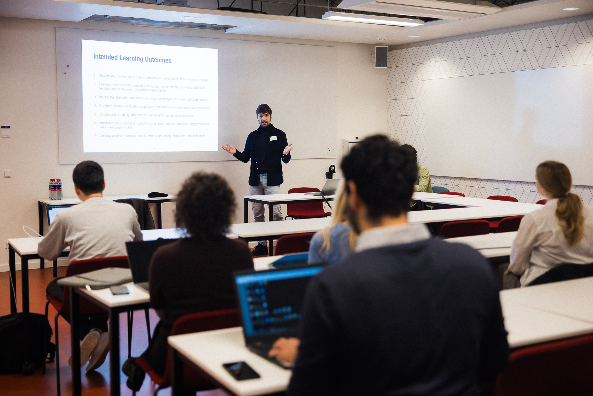 The morning programme featured a workshop on Language and Vision Models: From Image-Language Alignment to Storytelling and Narration by Sandro Pezzelle. In parallel, participants joined another workshop on Generative AI infrastructure at the UvA, led by Rik Jager, Max Paulus and Saurabh Khanna.